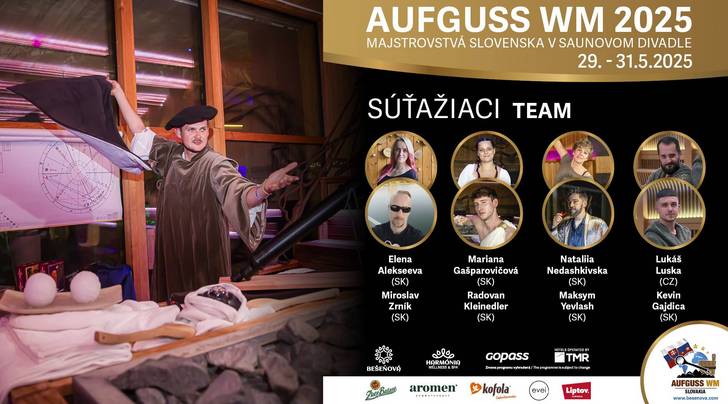 Majstrovstvá Slovenska v saunovom divadle pod záštitou Vodného parku Bešeňová a medzinárodnej asociácie AUFGUSS WM sú jedinečným podujatím na Slovensku zameraným na profesionálne saunové divadlo a tématicko-technické spracovanie príbehu v spojení s aromaterapiou a technikou práce so saunovým uterákom.