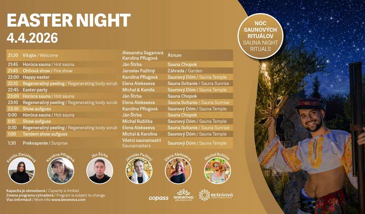 - the capacity of the Saunový dóm - sauna, for sauna rituals is limited (100 persons), the organizer does not guarantee entry to the sauna ritual without purchasing priority entry directly on the spot