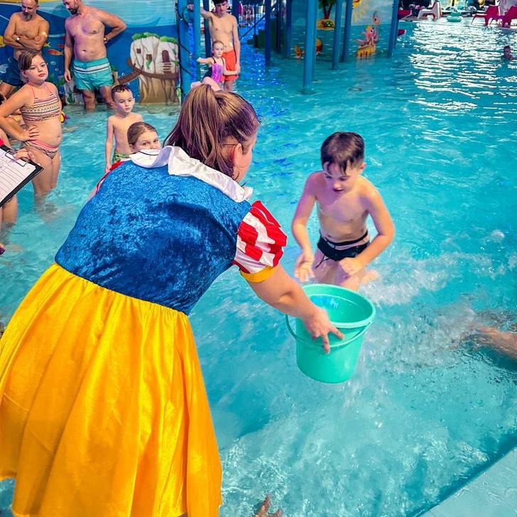 Każdy poranek zaczynamy od wesołej tanecznej rozgrzewki w basenach, gdzie poruszamy się razem z Królewną Śnieżką i jej przyjaciółmi. Następnie krasnoludki wyruszają do pracy, gdzie muszą sprostać wyzwaniom, które będą wymagać od nich odwagi, siły i mądrości. Wspólnie zatańczymy nasze ulubione tańce i dowiemy się czegoś o krainie baśni lub uzyskamy poradę od magicznego lustra. A na koniec dnia zatańczymy razem na królewskim balu.