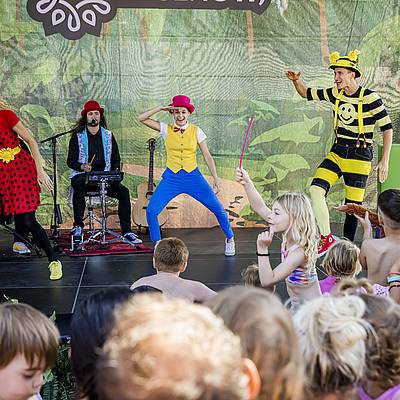 Celé podujatie bude moderovať Hugo Sníček, ktorý má pre vás hromadu prekvapení! Okrem zábavného programu na pódiu čakajú na deti aj rôzne súťaže, choduliari či maľovanie na tvár. A k tomu všetkému? Vodné atrakcie, tobogany, bazény a nezabudnuteľné letné zážitky!