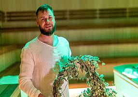 Piotr Sobik (PL) patrí medzi málo saunamajstrov, ktorí pracujú s vôňami nielen intuitívne, ale aj vedecky – presne vie, ktoré látky sú v saune bezpečné aj pri vysokých teplotách.