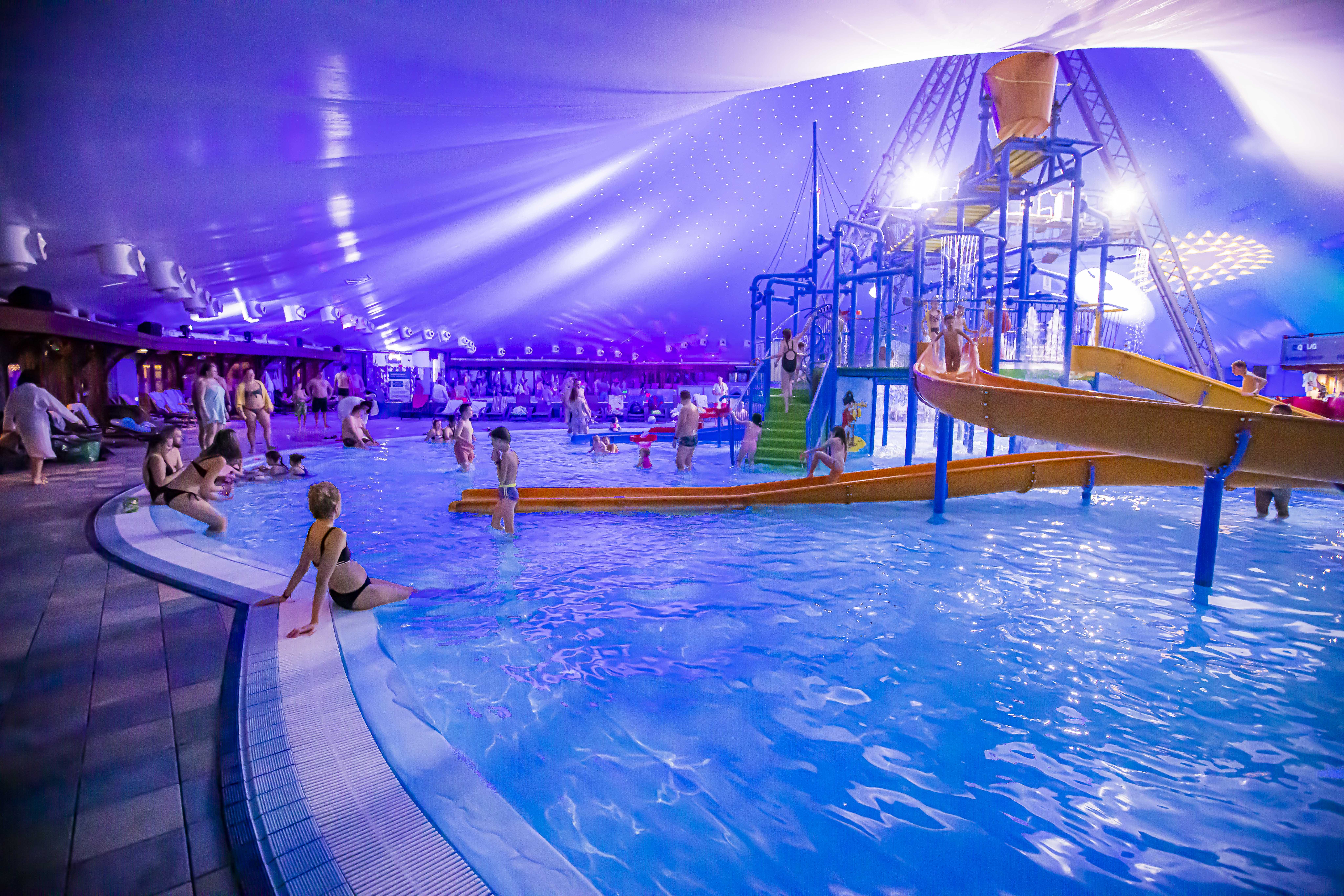 💦 večerné kúpanie v termálnych a čírych bazénoch,