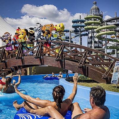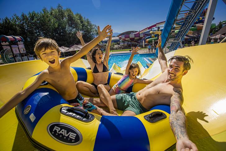V rámci letnej zóny môžete so staršími deťmi vyskúšať aj zábavné raftovanie v miernom prúde. Preplavte sa bez zrážky popod drevený mostík a cez úzku jaskyňu.